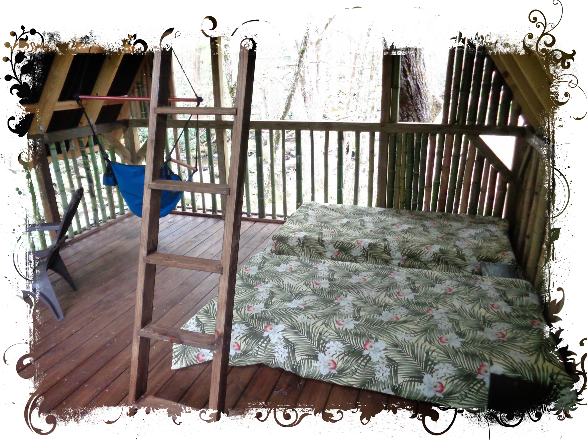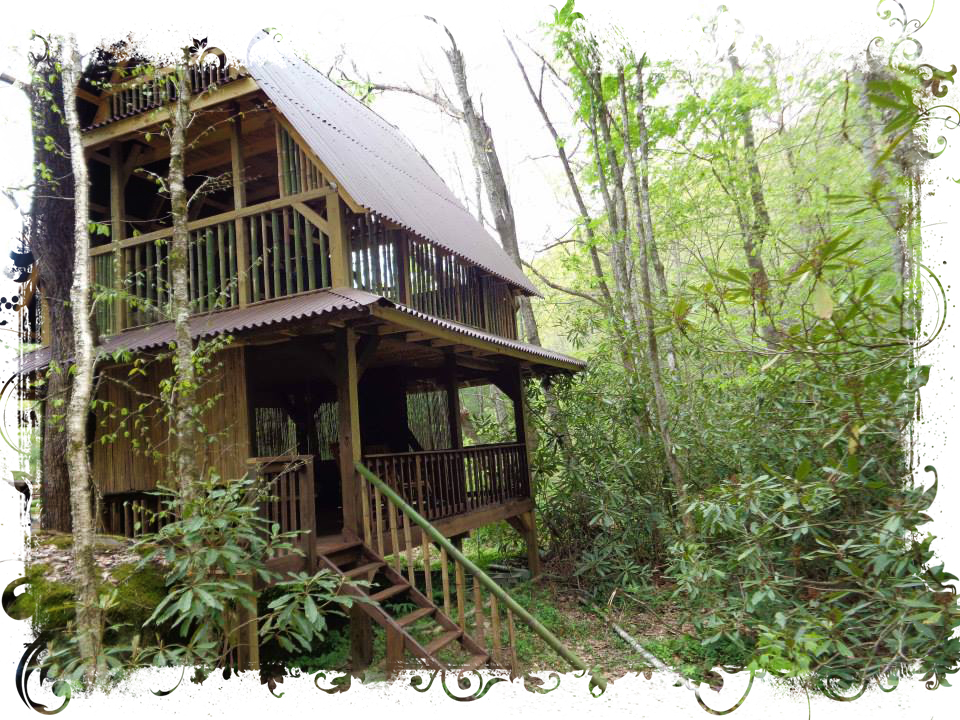 Narnia is located next to the river, it is a three level shelter with three walls, the fourth open to the cascading mountain stream and the national forest. It features a full size and twin bed on the first level and two twins plus space for an additional cot on the second floor, plus a small loft.